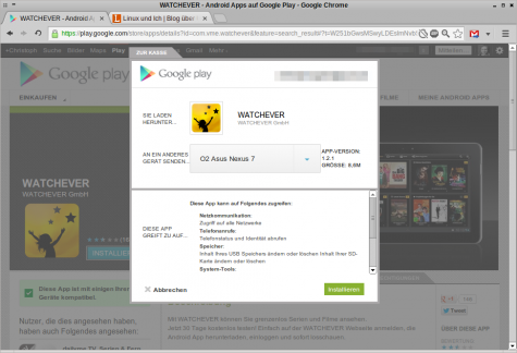 Danach läuft Watchever auf eurem Handy wie auf einem Tablet. In meinen Augen ist es ziemlich unverständlich warum Watchever diese Hürde aufbaut. Wie man sieht tut Watchever doch — fast — ohne Probleme auch auf einem Smartphone, so lange das Display des Geräts eine halbwegs brauchbare Auflösung bietet.