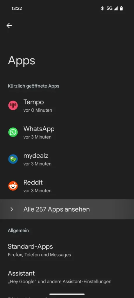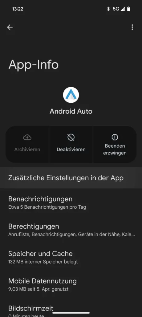 • Android 10 oder neuer: Einstellungen » Apps » Alle X Apps ansehen » Android Auto » Zusätzliche Einstellungen in der App