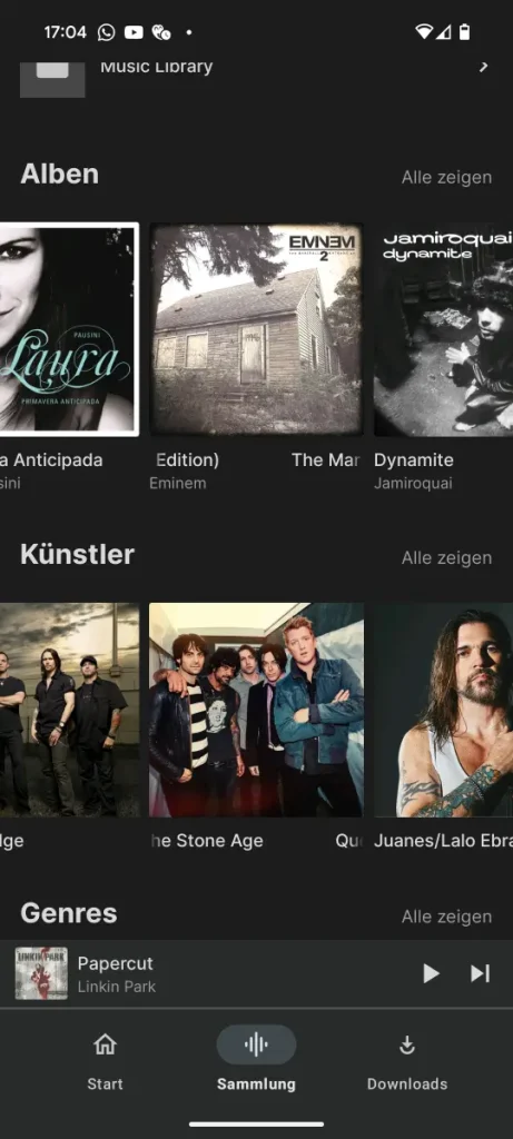 Wenn sich deine Musiksammlung nicht oft ändert, kannst du dann nicht einfach gleich die Dateien auf dem Handy speichern? Ich mache das schon allein wegen des unzuverlässigen Empfangs in manchen Gegenden.
