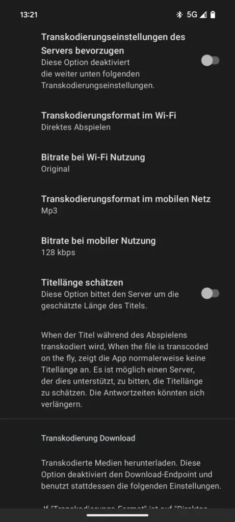 • Transcoding: Wer mag, kann die Musik je nach Verbindung automatisch herunterrechnen lassen