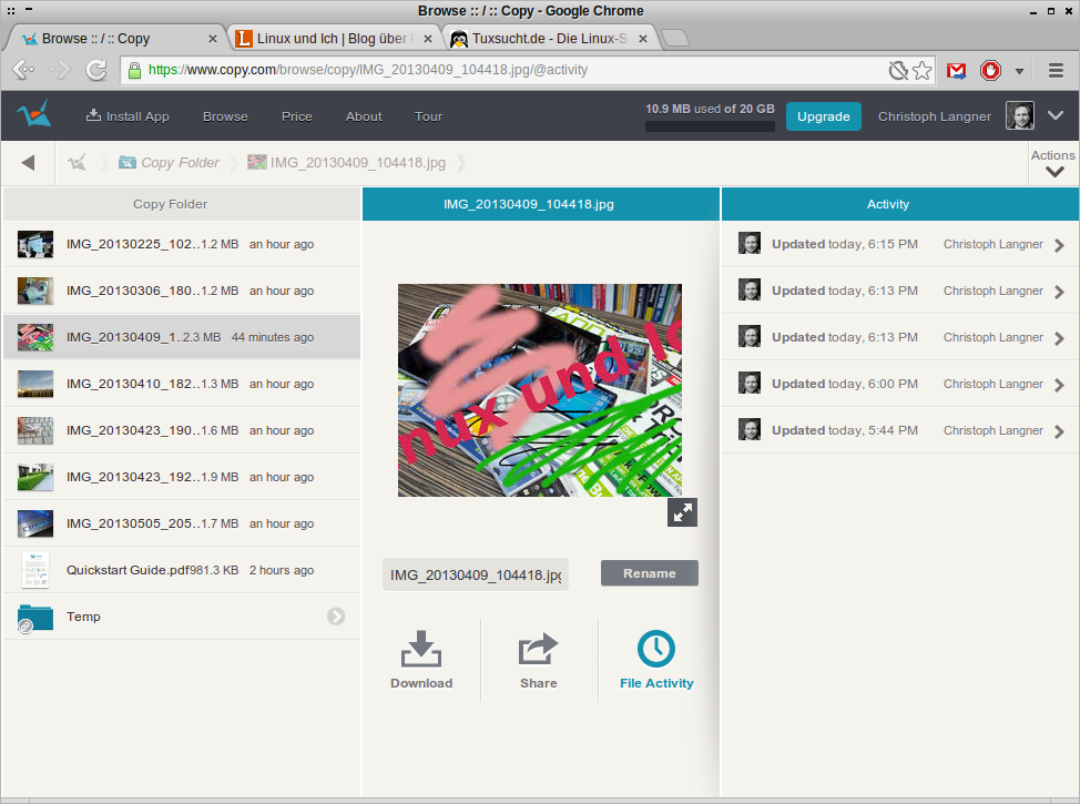 Im Browser habt ihr Zugriff auf die Versions-Historie eurer Uploads.