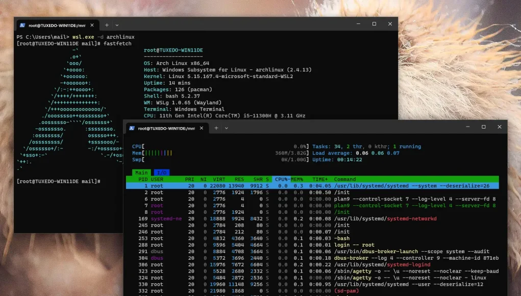 WSL basiert auf Virtualisierungstechniken, allerdings arbeitet es nicht mit vollwertigen VMs, sondern mit leichtgewichtigen Containern, die deutlich weniger Ressourcen fressen. Dadurch lässt sich etwa ein Terminal mit einem Linux-Shell schnell öffnen, Werkzeuge wie grep, sed, awk oder auch pacman lassen sich nativ nutzen – vorausgesetzt, die passende Distribution ist installiert.