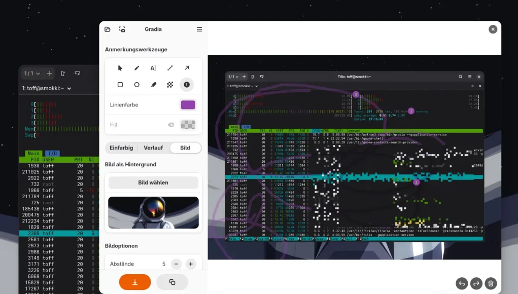 So wird Gradia zum direkten Ersatz für andere Screenshot-Tools, nur dass das Ergebnis direkt zur weiteren Bearbeitung bereitsteht. Im Hintergrund greift Gradia auf das Screenshot-Portal von Wayland zu, sodass es zu keinen Problemen mit dem modernen Display-Server-Protokoll kommt.