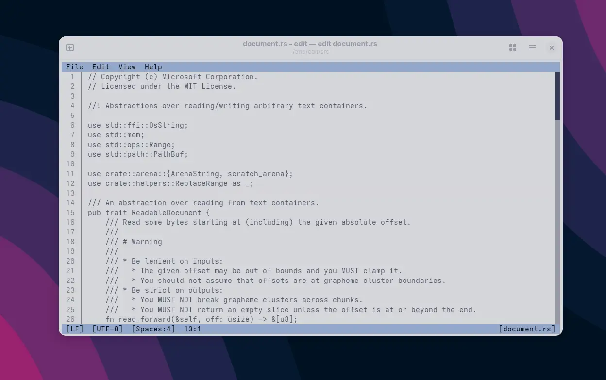 $ wget https://github.com/microsoft/edit/releases/download/v1.0.0/edit-1.0.0-x86_64-linux-gnu.xz
