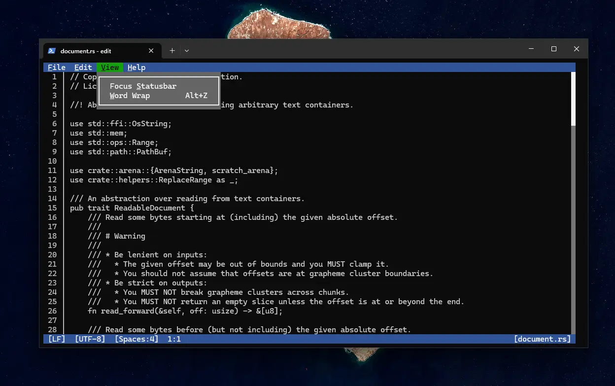 Der Editor wurde in Rust geschrieben, nachdem erste Prototypen in C, C++ und Zig entstanden waren. Die Entscheidung für Rust fiel, weil die Sprache innerhalb Microsofts bereits offiziell unterstützt wird und sich gut für systemnahe Programmierung eignet. Der Editor ist natürlich für Windows-Admins interessant, weil man sich seit Windows 10/Windows Server 2019 via SSH auch auf Windows-Kisten einloggen kann. Für administrative Aufgaben braucht es dann auch einen effektiven Editor.