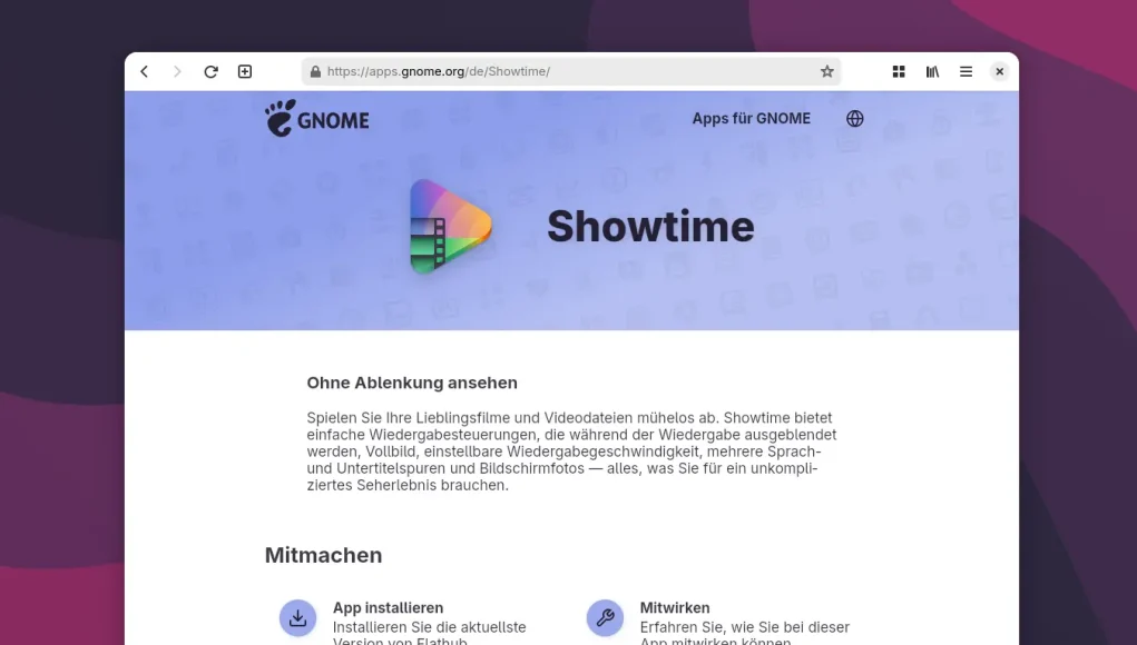 Neu ist Showtime als Anwendung nicht. Das Programm entstand im Rahmen des GNOME-Inkubators und steht interessierten Nutzerinnen und Nutzern schon seit Längerem zur Verfügung. Ihr findet es auf Flathub oder in den Paketquellen vieler Distributionen. Ubuntu 25.04 bringt den Videoplayer zum Beispiel bereits mit, ebenso Arch Linux. Neu ist lediglich die Aufnahme in den offiziellen GNOME-Kern.