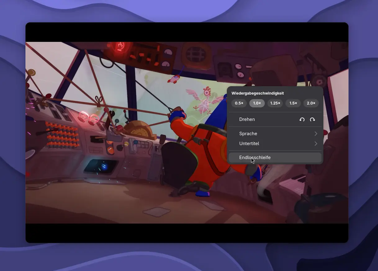 Zu den Funktionen von Showtime gehören die Unterstützung für GStreamer-basierte Medienformate, die Anpassung der Wiedergabegeschwindigkeit, das Aktivieren von Untertiteln aus Dateien oder eingebettet im Video sowie die Auswahl von Audiospuren. Praktisch ist außerdem die Möglichkeit, Videos zu drehen, zum Beispiel bei Aufnahmen vom Smartphone. Auch eine Wiederholfunktion für Clips ist enthalten.