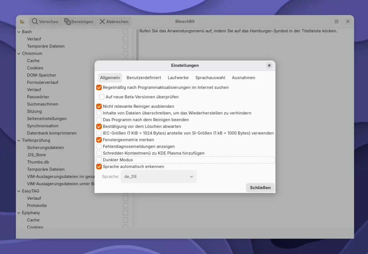 BleachBit 5.0.0 bringt auch plattformübergreifende Verbesserungen mit, die den Umgang mit der Software vereinfachen:
