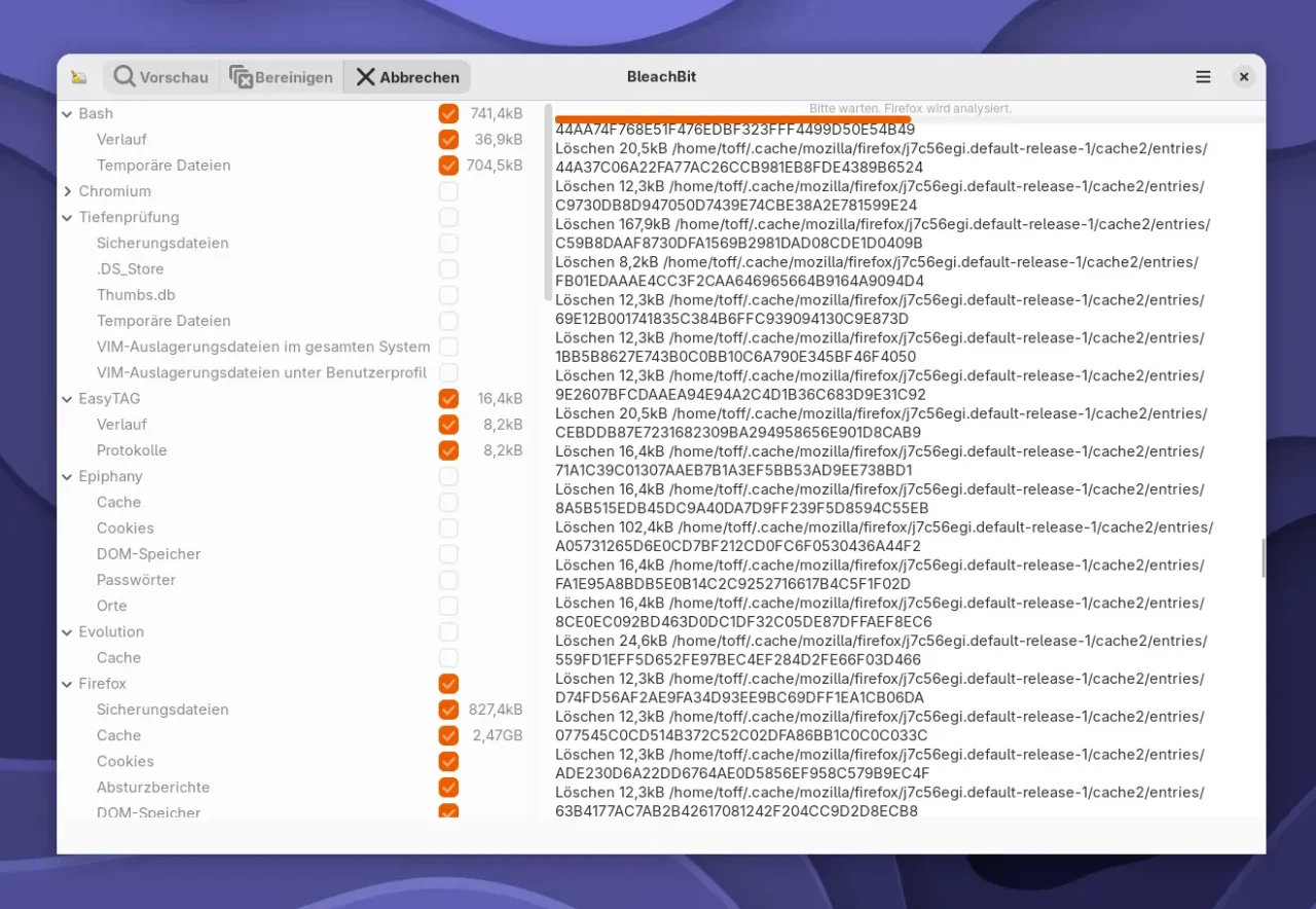 Kommentar zu BleachBit und Co.: Seid vorsichtig, wenn ihr mit solchen Tools euer System automatisch aufräumen lasst. Programme legen nicht ohne Grund Cache-Speicher an. So muss Firefox beispielsweise nicht jedes Mal alle Style-Dateien neu aus dem Netz laden, und auch Nautilus muss Thumbnails von Bildern nicht ständig neu erstellen. Ein unbedachter Klick kann jedoch auch wichtige Daten löschen, wie etwa Logins und Passwörter in Firefox oder Chrome/Chromium. Seid also vorsichtig beim Einsatz von BleachBit.