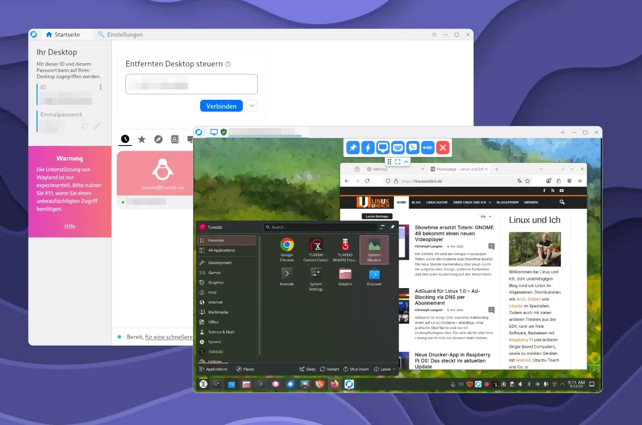 RustDesk 1.4.0 steht auf GitHub für Linux, Windows, macOS, Android und iOS zum Download bereit. Unterstützt werden verschiedene Architekturen wie x86-64, AArch64 und ARMv7. Verbindungen von und zu Rechnern, die mit Wayland laufen, haben ohne Probleme funktioniert. Inzwischen gibt es für mich kaum mehr Hindernisse beim Einsatz von Wayland.