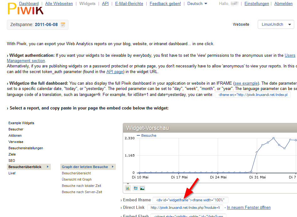 Widget in WordPress eingeben und Auth-Token hinzufügen
