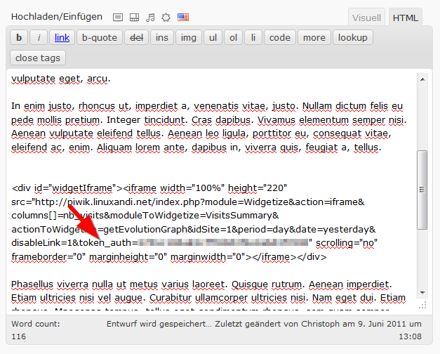 Widget in WordPress eingeben und Auth-Token hinzufügen